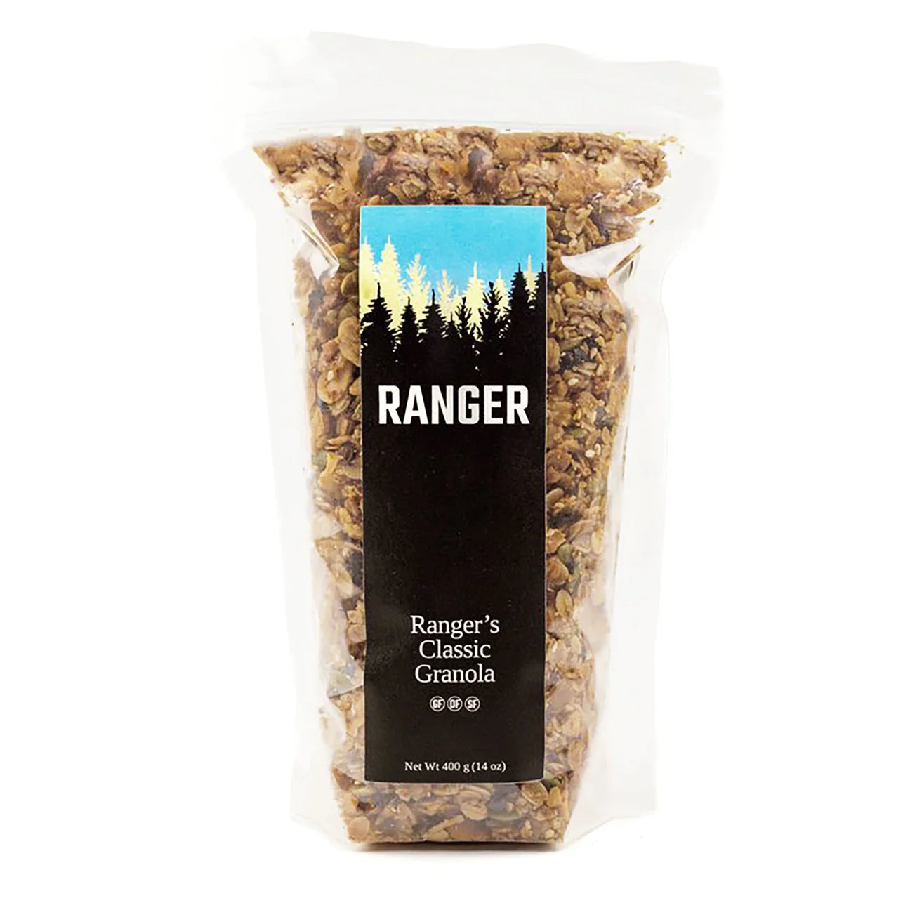Ranger's Classic Granola is a great treat any time of the day. It's packed with organic oats, almonds, sunflower seeds, coconut, pumpkin seeds, sesame seeds, cacao nibs, honey, maple syrup and olive oil.