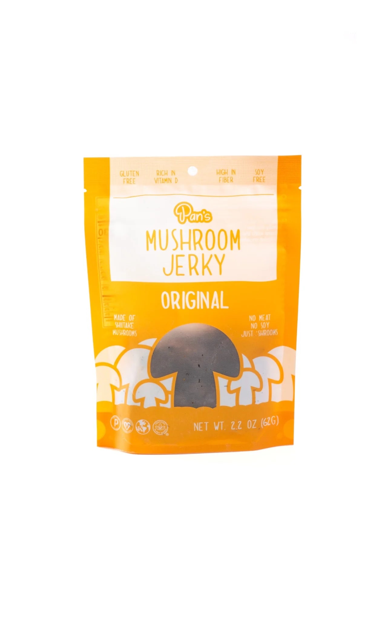 Made of shiitake mushrooms, Pan's Mushroom Jerky is plant-based, vegan, high in fiber and vitamin D, paleo-friendly, Kosher, soy-free, and gluten-free.